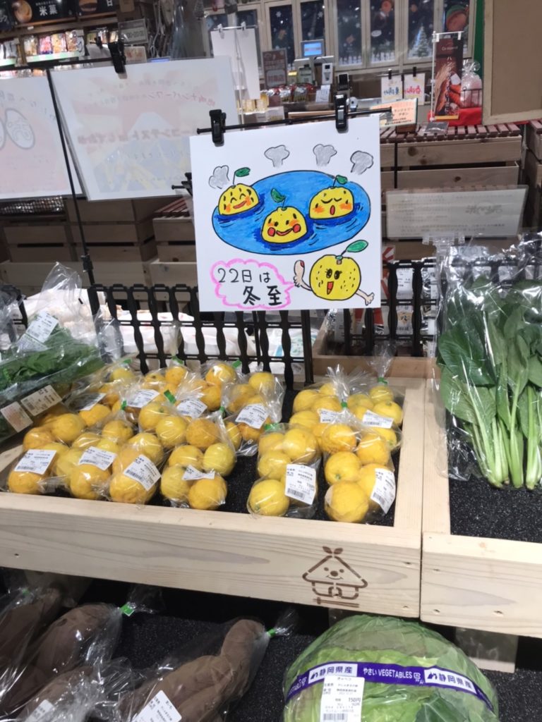 冬至 2022年12月22日 12月22日は冬至です。 柚子湯に入ると、風邪をひかず冬を越せると言われています。 かわいいPOPと共にサントムーンオアシスおなかすいたさん、事業所内無人販売所にて販売中です。 皆さまが、元気に冬を越せますように!