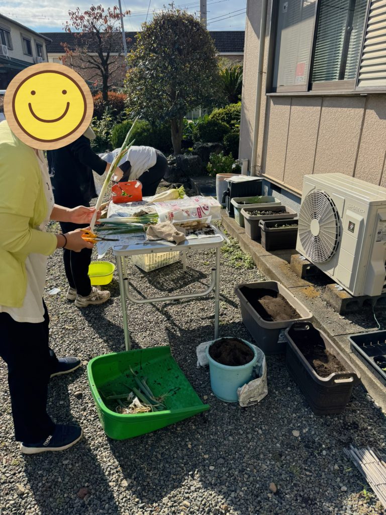毎日畑で収穫した野菜を事業所内の無人販売所、納米里にあるどんこワークスさんの無人販売所、サントムーンオアシスのおなかすいたさんへ納品しております。