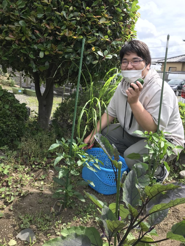 ナスやピーマンの夏野菜の収穫が始まり、早速、無人販売所、サントムーンの「おなかすいた」さんへ出荷してきました。