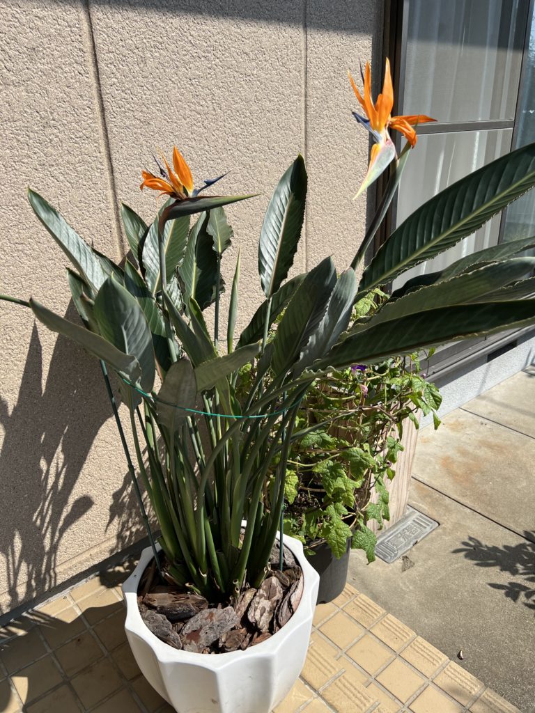 極楽鳥花 2023年10月6日 ご近所の方より、「極楽鳥花」をご提供いただき、玄関が華やかに彩られています。見たこともない豪快なお花は、毎日、利用者さんのお出迎えをしてくれています。花言葉はお花の見た目から「気取った恋」「恋の伊達者」などありましたが、南国の和やかな「寛容」という言葉ががじゅまるの樹には合っているかな?つぼみもあるので、次の開花が待ち遠しいです。いつも、水やりまでしてくださる近所のO様ありがとうございます!