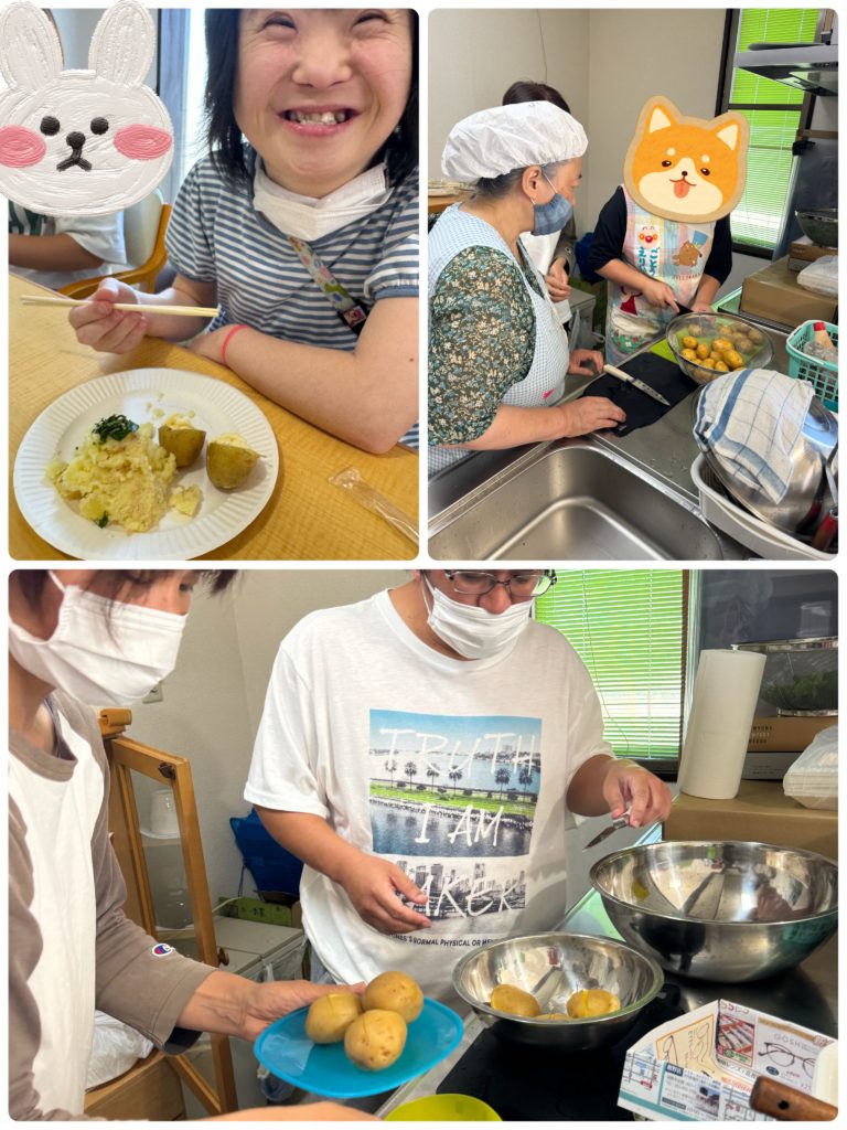 野菜 2024年6月22日 今年度は、今まで以上に畑仕事に力を入れています。新しく、バジルなどハーブにも挑戦! 上手においしく育ちました。お買い求めは、事業所内無人販売所、サントムーンオアシス内おなかすいたさん、どんこワークス無人販売所にて。 畑で採れたおいしい「きたあかり」を皆で試食しました。新鮮なバジルやパセリも刻んで蒸かしたじゃがいもと一緒に食べたら、本当においしかった!是非皆さんもお試しください!
