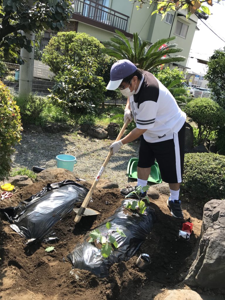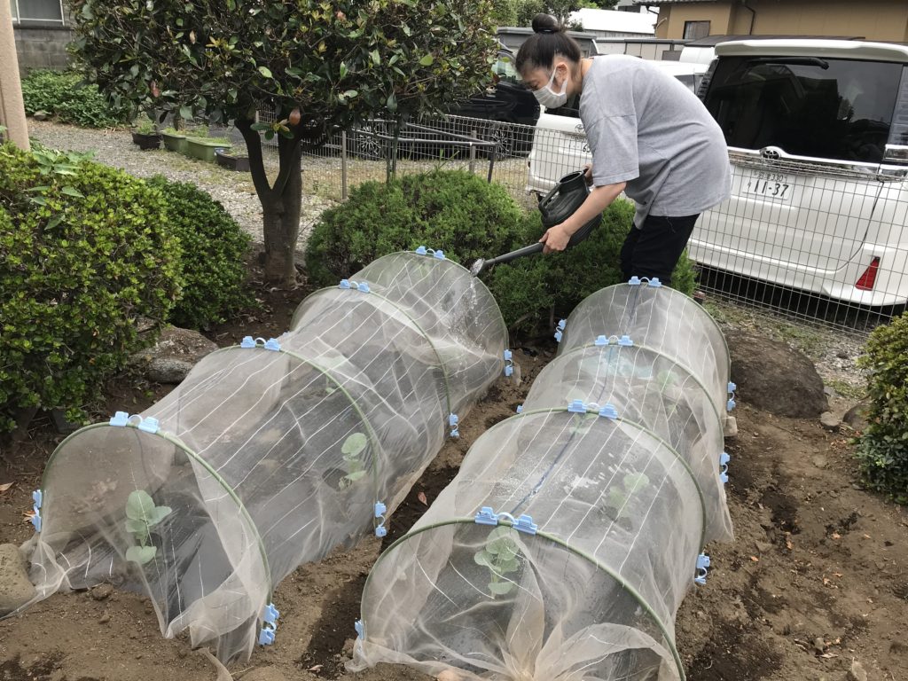 庭の畑に、スティックセニョール・芽キャベツ・プチベールを植えました。