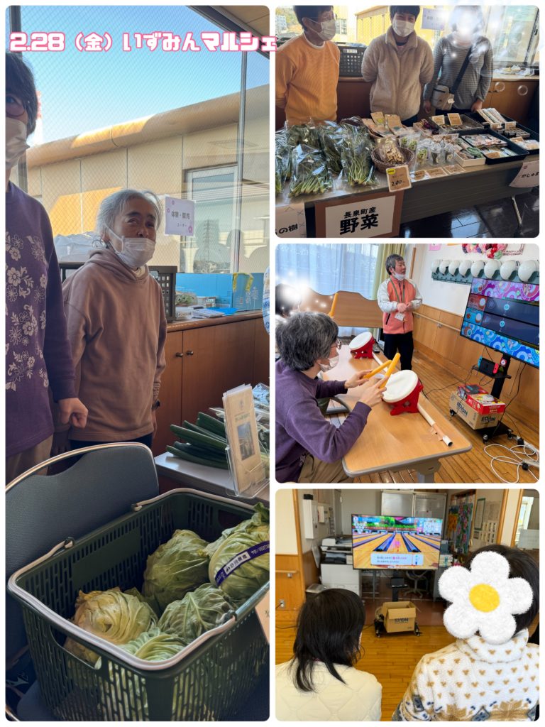 R7.2.28(金)同じ町内の「在宅福祉総合センター いずみの郷 3階旧食堂」にて『いずみんマルシェ』が行われ、この日勤務の利用者さんと職員全員で、販売とお客さんとして参加させていただきたました。